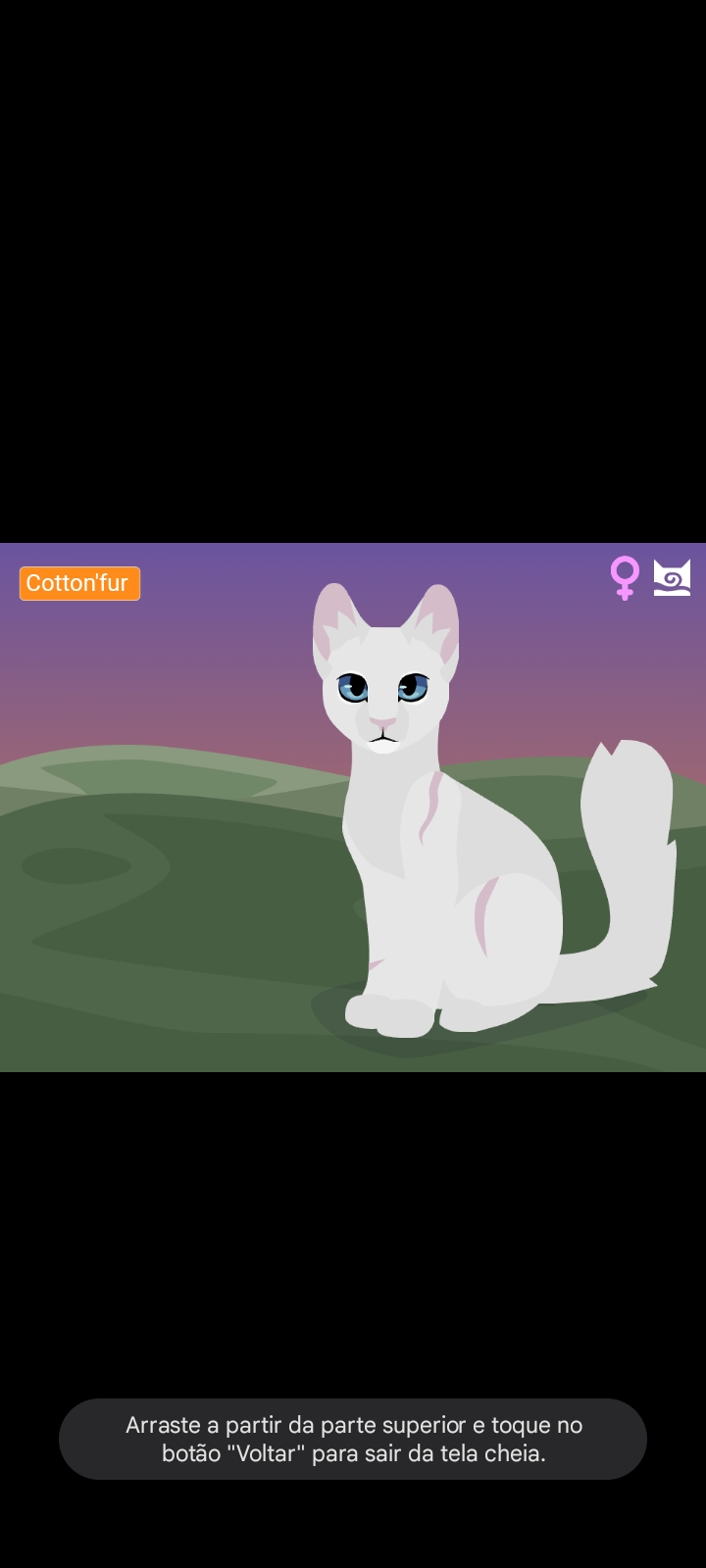 Cotton'fur, she is a queen of WindClan, but spent part of her life as a kit and apprentice in ShadowClan, she is the daughter of Molasses'fur, and a human kitten named Fog, but her adoptive father was Thunder'claw, she was rejected by her mother for being the daughter of a human kitten, but even so she did not stop being a brilliant apprentice, although she broke the warrior code frequently, secretly hiding with Olivesses'Paw/Fang later, when the clan leader (Blooding'Star) found out about their meetings, she was exiled, going to her beloved's clan, having five kits with him, Striped'Kit, Black'kit, Burned'Kit and Frost'Kit in the first litter, and in the second litter Web'Kit, and Honey'Kit, who was stillborn. She mentored Flowery'Paw, creating a strong bond with her, considering her a daughter. When Cotton'fur began to show symptoms of a severe Green Cough, Olivesses'Star chose Brught'Fur to replace the cat after she died, which deeply hurt her. One day during a clan raid, Flaming'claw killed Cotton'fur in front of Web'Kit as revenge for the death of their mother.