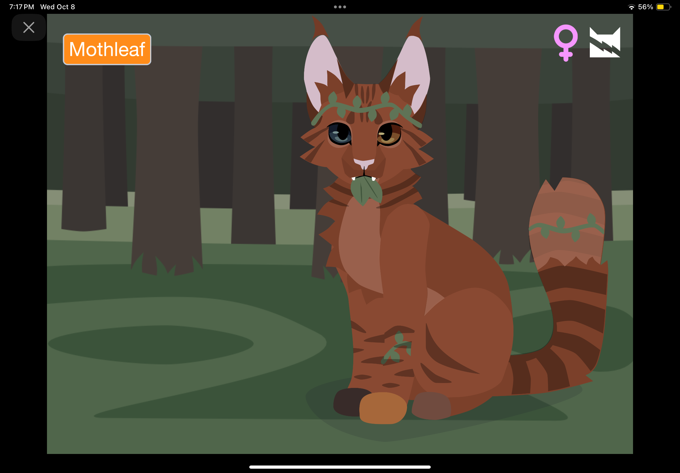 Bio: Sorrelmist is a warrior from Thunderclan. She is quiet, brave, and mysterious.